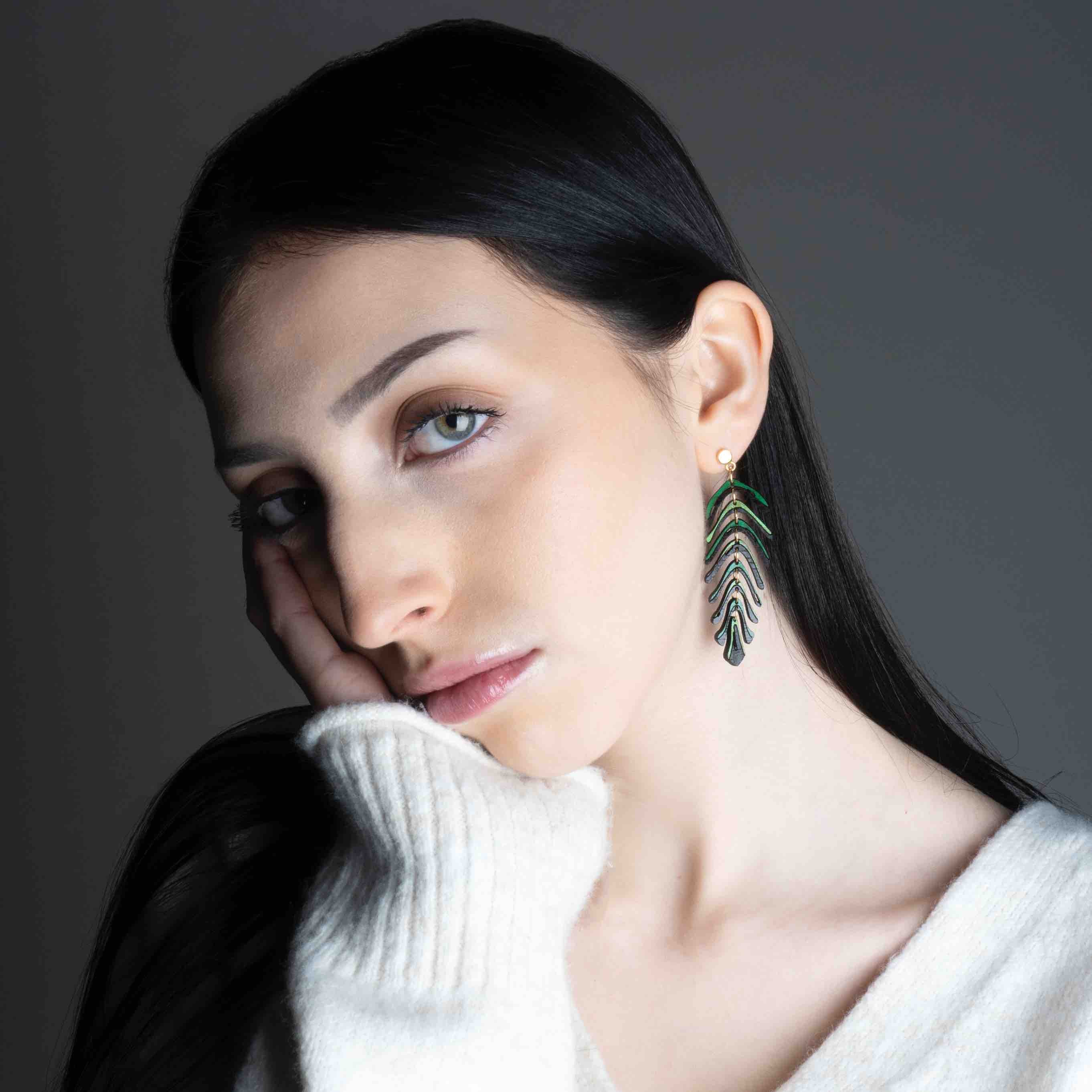 Areca Palm Leaf Reclaimed Rosewood Dangle Earrings