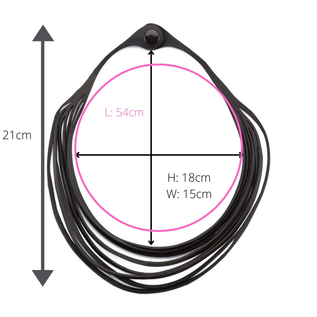The recycled rubber is retrieved from old industrial printing machines. When the printers reach the end of their lives, they will be broken up and sold for scrap. We reclaim the rubber belts and use them for jewellery instead. With variations in texture and colour, all of the pieces are unique.