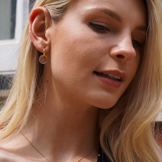 Goldohrringe aus recyceltem Holz mit Asterblume