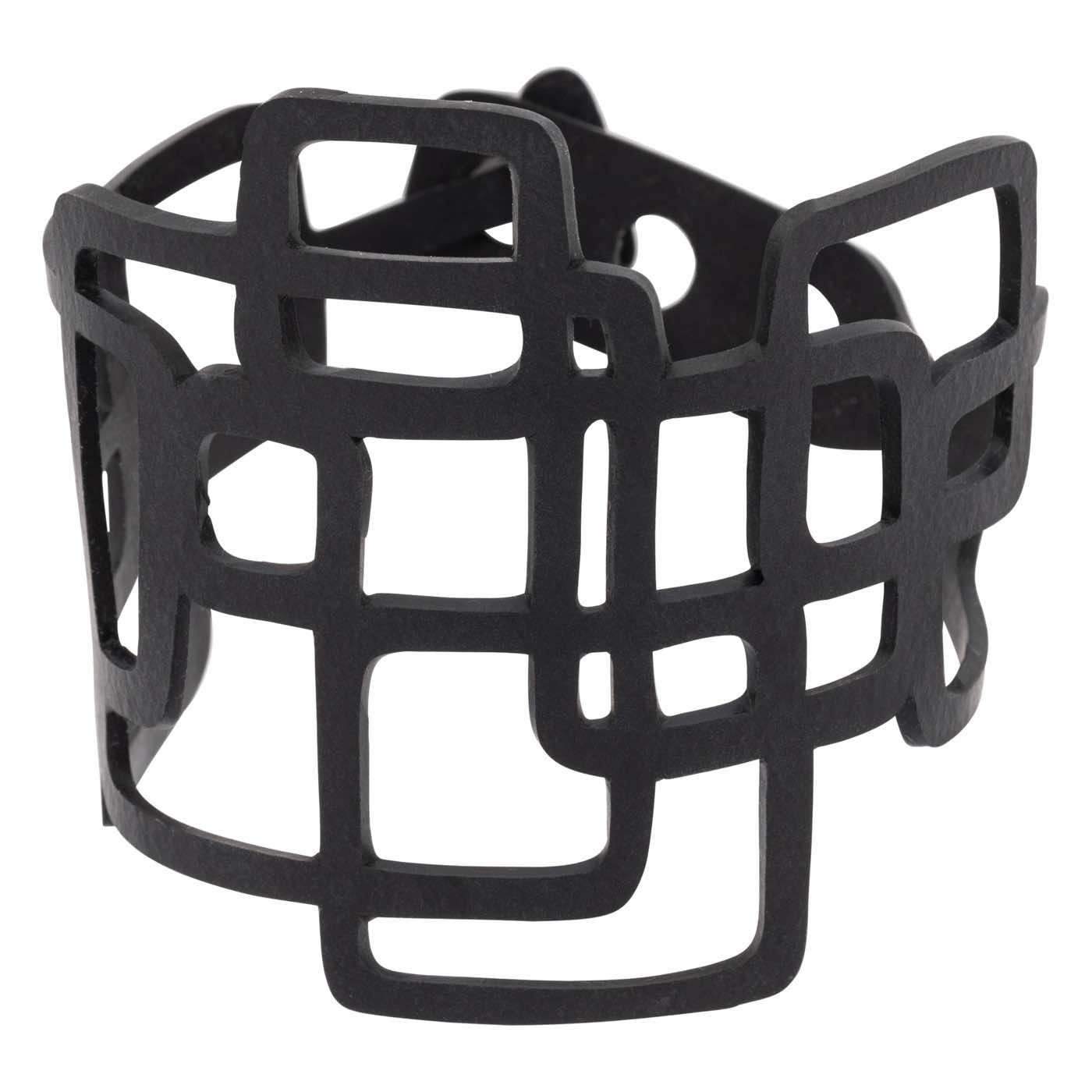 Der recycelte Gummi stammt von alten industriellen Druckmaschinen. Wenn die Drucker das Ende ihrer Lebensdauer erreichen, werden sie zerlegt und als Schrott verkauft. Wir bergen die Gummigurte zurück und verwenden sie stattdessen für Schmuck. Mit Variationen in Textur und Farbe sind alle Stücke einzigartig.