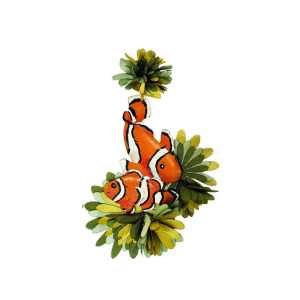 Often described as hand-carved calabash shell art, this technique transforms natural materials into expressive wearable pieces. The detailed carving and hand-painted finish highlight the playful personality and striking colours of the clown fish.