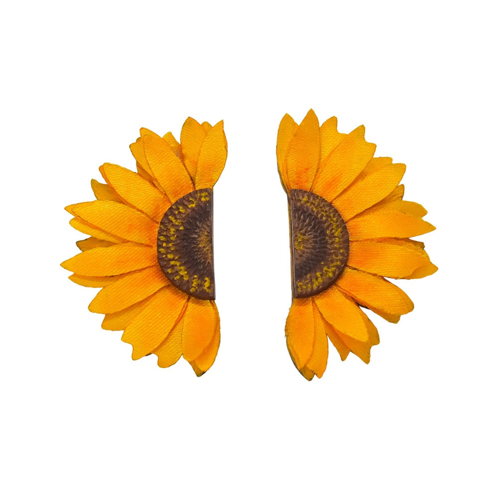 Radiant, joyful and beautifully handcrafted, these Sunflower Earrings celebrate the beauty of nature and traditional Colombian craftsmanship. Featuring layered fabric petals over a hand-carved totumo shell centre, the design captures the warmth and optimism of a sunflower in full bloom.